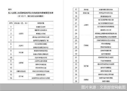 7月18日,文旅部發(fā)布公示稱,經(jīng)地方申報(bào)、省廳推薦、合規(guī)性審查、專家評(píng)審、輿情風(fēng)控、實(shí)地考察等程序,擬確定北京市東城區(qū)王府井、朝陽區(qū)北京歡樂谷、朝陽區(qū)大悅城等123個(gè)項(xiàng)目為第二批國家級(jí)夜間文化和旅游消費(fèi)集聚區(qū)。