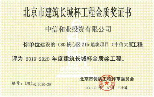 近日,由中信和業(yè)開發(fā)建設(shè)的中信大廈榮獲2019-2020年度北京市建筑長(zhǎng)城杯(竣工)工程金質(zhì)獎(jiǎng),這是該項(xiàng)目繼2018年北京市建筑長(zhǎng)城杯(結(jié)構(gòu))工程金質(zhì)獎(jiǎng)、2019年中國鋼結(jié)構(gòu)金獎(jiǎng)杰出工程大獎(jiǎng)后在工程質(zhì)量方面獲得的又一殊榮,展示了公司在項(xiàng)目開發(fā)建設(shè)方面雄厚的技術(shù)與管理實(shí)力。