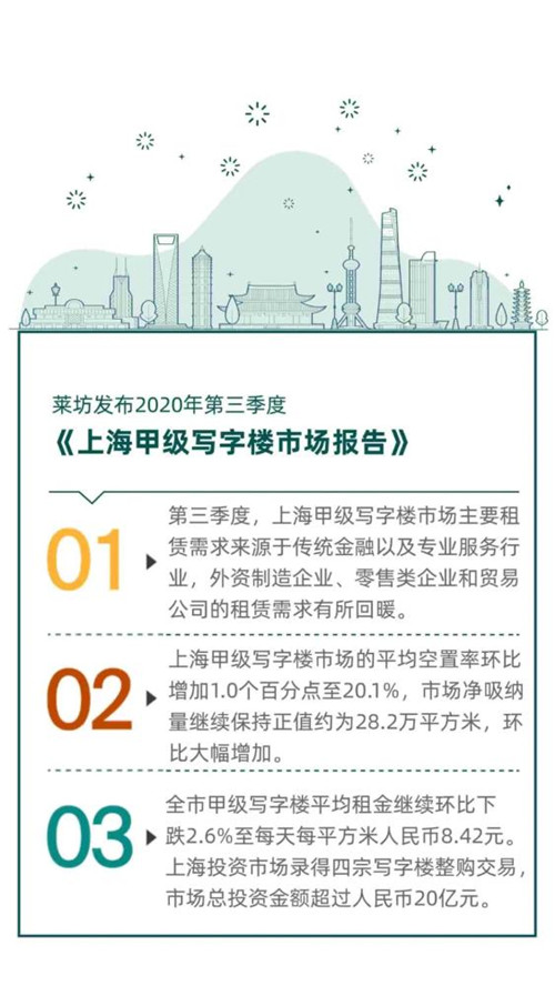 萊坊董事,上海及北京研究及咨詢部主管楊悅晨表示:“在第三季度的租賃成交中,國內傳統金融類企業和專業服務類企業的占比超過50%,且有超過60%集中在核心商務區。制造、貿易以及零售行業的租賃需求有所回暖。第三季度,來自上述行業的租賃成交占比接近30%,環比增加10個百分點左右,其中近半數是外資類企業!