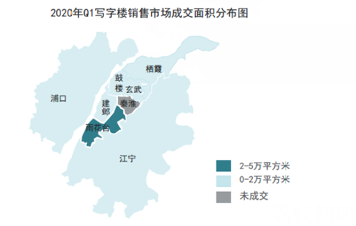 2020年第一季度商辦用地共成交6幅地塊,均以底價成交,總面積約36萬平方米,同比上漲531%。土地成交主要集中在江寧、棲霞、江北新區板塊,新興板塊土地出讓市場逐步活躍,核心區域出讓步伐放緩。其中棲霞區濱江商務區一期地塊出讓面積較大,包含住宅和商辦用地,而秦淮區三山街站地塊樓板價最高,達到每平方米14,076元。