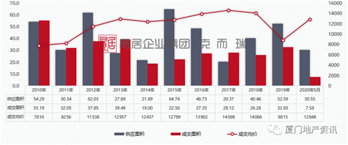 廈門市2010年-2020年5月辦公供求走勢(shì)