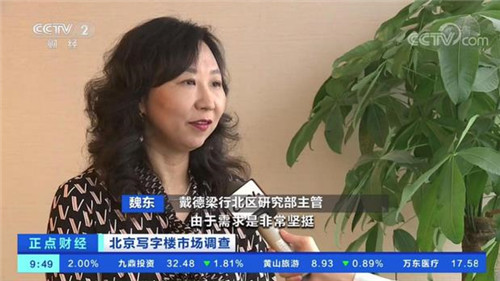 近日,央視財(cái)經(jīng)頻道(CCTV2)采訪了戴德梁行北區(qū)研究部主管魏東和戴德梁行北區(qū)寫(xiě)字樓部主管廉峰哲,針對(duì)北京寫(xiě)字樓上半年高空置率、后疫情下的租金變化,及后期新入市的寫(xiě)字樓新增供應(yīng)量等問(wèn)題進(jìn)行了面對(duì)面的交流。