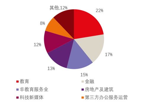 分行業看,在線教育行業成為2020年需求最旺盛的行業之一,其甲級市場的成交面積占比高達22%。疫情的沖擊不改人們對教育的熱情,資本的推動更刺激了在線教育的大幅擴張。此外,金融業、非教育服務業、房地產及建筑、科技新媒體等行業都有活躍表現。金融業中的保險公司不斷擴張代理人,繼續催生大面積成交;專業服務業中的律師事務所較為突出,這包括受注冊制背景下企業上市需求上升以及疫情沖擊之下的經濟類訴訟增多等影響。