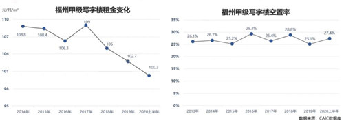 受疫情及新增供應(yīng)影響,截止2020年第二季度末,福州甲級寫字樓空置率已達到了27.4%,同比去年上升2.3%。更不用說未來還有升龍環(huán)球中心、僑璽中心、518世茂大廈等寫字樓不斷入市,更是加大了整體市場的供應(yīng)量。
