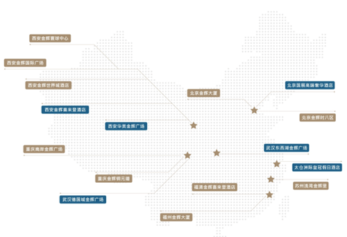 金輝集團在發展之初就非常關注商業地產的布局與開發,1999年在福州開發完成第一個商業項目:福州·金輝大廈,目前已經持有商業的城市有北京、上海、重慶、西安、武漢、蘇州、福州等,在全國核心一線城市、二線城市的核心區域,擁有自持商業已經超過200萬方,2019-2020年金輝商業連續兩年獲得"中國房地產商業50 強"。