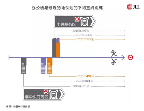 新地鐵線路的建成將拉近非中央商務區樓宇與地鐵站的距離,項目通達性的提升吸引著更多租戶向非中央商務區遷移。租戶向非中央商務區的搬遷整合與新項目的不斷竣工形成了聚集效應,為板塊帶來了新的動能。開發商也更深刻地意識到交通配套的重要性,在未來辦公項目的選址上傾向于毗鄰地鐵站的區位。