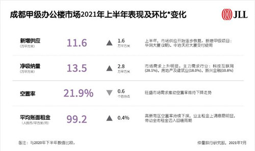 房訊網(wǎng)訊 仲量聯(lián)行近日發(fā)布成都寫字樓市場報告顯示,上半年成都甲級辦公樓凈吸納量達(dá)13.5萬平方米,居全國第五,在1.5線城市中排名首位。