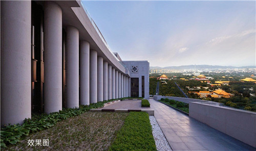 項目邀請中國臺灣戴育澤建筑師事務所操刀。取型自明朝皇權最高形制代表「翼善冠」,搭配優質稀缺石材打造的標志性立面,成就總建筑面積75150㎡,地上14層,地下4層的新古典主義商務地標。