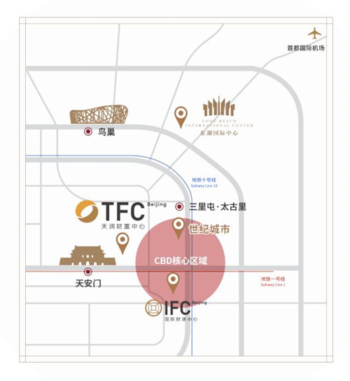 回顧往昔,以故宮為軸心的北京中軸線,衍生出八朝古都的壯美秩序、雄偉氣魄。著眼當下,北京TFC天潤財富中心上襲勤政殿、太廟,下承第二使館區、北京CBD,連接起一條「立于中,顯于國」的全新價值經線。