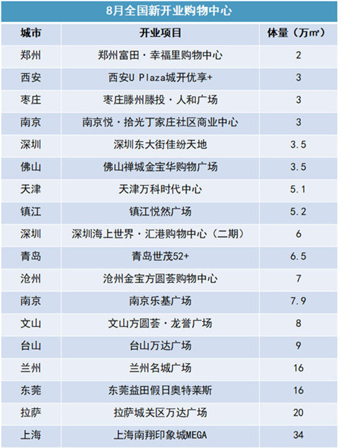 一線城市中,深圳和上海均有購物中心開業,打破了今年疫情以來無新購物中心項目入市的局面。