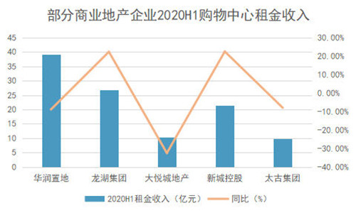與此同時,也不乏在疫情下實現同比增長的企業,其中以龍湖集團和新城控股為代表,二者上半年租金收入同比增速均超20%。