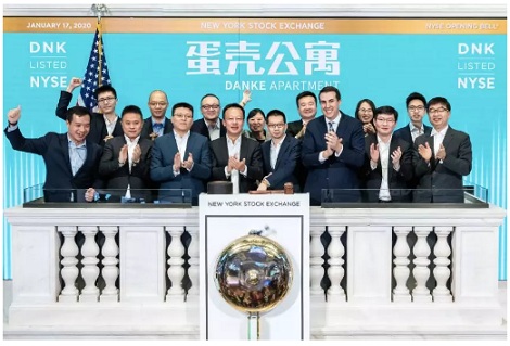 美國東部時間2020年1月17日,蛋殼公寓正式在紐交所掛牌,股票代碼為“DNK”。按照發行價,承銷商行使超額配售權后,蛋殼公寓總計募集資金超1.49億美元,市值可達27.4億美元。