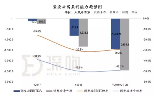 但與此同時,蛋殼2017年凈虧損2.72億元,2018年凈虧損13.69億元;2019年前9個月凈虧損25.16億元,上年同期凈虧損8.13億元,非通用準則下(Non-GAAP)調整后凈虧損24.54億元人民幣,調整后EBITDA為負的14.61億元人民幣。