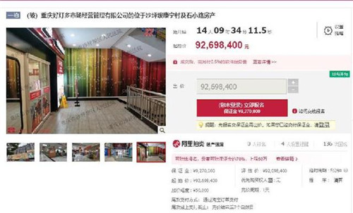 2020年12月31日10時至2021年1月1日10時止,重慶好燈多市場經營管理有限公司(好燈多公司)管理人在淘寶網阿里拍賣破產強清平臺,對位于沙坪壩康寧村及石小路房產進行公開整體拍賣活動,總建面13748.42平方米,起拍價9269.84萬元,建面起拍價每平方米折合6742元。
