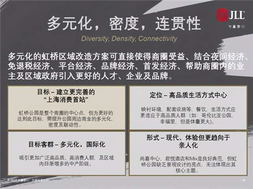 以上海古北虹橋商務區為例,作為一個以集聚發展功能為核心的區域。這里是中國第一個以涉外商貿為主導的開發區,是上海輻射長三角的重要功能區,而如何使虹橋商圈內優質、多元化的人口基礎,與商業及公共設施間產生聯動發展,對于上海塑造兼具體驗性、互動性、創造性的區域發展案例具有重要意義。