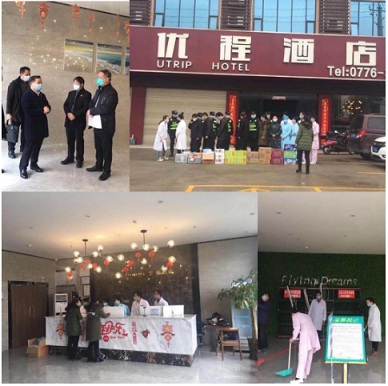 1月24日(除夕),為了配合疫情防控工作,全力以赴支援武漢抗疫一線,經(jīng)優(yōu)程酒店集團(tuán)研究決定,優(yōu)程酒店武漢前進(jìn)路店將停止對(duì)外營業(yè),只為醫(yī)療防控部門與支援部門提供免費(fèi)住宿服務(wù)。1月26日起,部分疫情嚴(yán)重區(qū)域門店停止對(duì)外營業(yè),免費(fèi)為抗疫團(tuán)隊(duì)提供服務(wù),廣西百色田陽高鐵站店作為田陽縣新冠病毒醫(yī)學(xué)觀察隔離區(qū)和收住觀察點(diǎn),酒店每天配合醫(yī)護(hù)人員對(duì)酒店所有區(qū)域進(jìn)行全面消毒,并做好相關(guān)記錄。醫(yī)護(hù)人員為酒店準(zhǔn)備了充足的防疫物資,并且為入住隔離住客提供了一系列的專業(yè)檢測流程和隔離措施。