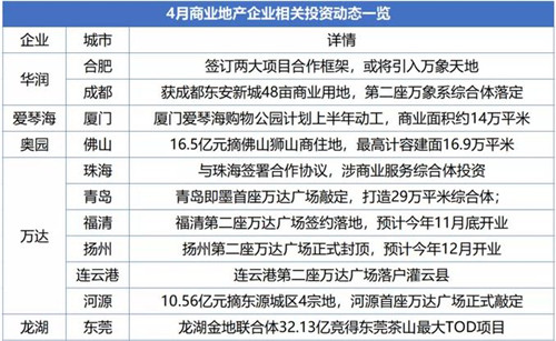需要注意的是,雖然購物中心開業數量繼續低位運行,但是投資卻有回溫跡象,月內萬達、華潤、龍湖等企業均有項目新動態。