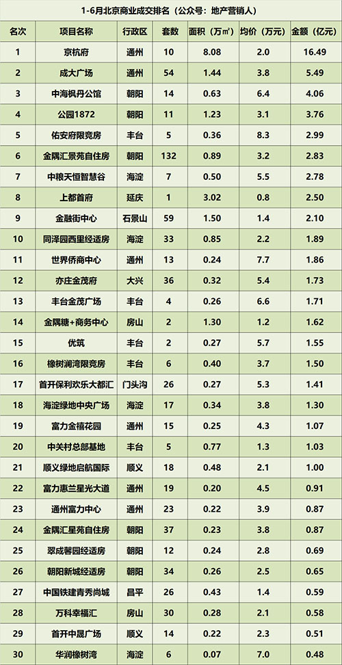 2020年1-6月,北京商業市場新增供應809套,同比上漲158%;成交1185套,下降20%;成交面積32.18萬㎡,上漲32%;成交均價24985元/㎡,下降15%;成交金額80.4億元,上漲12%;目前存量18631套,同比上漲5%。