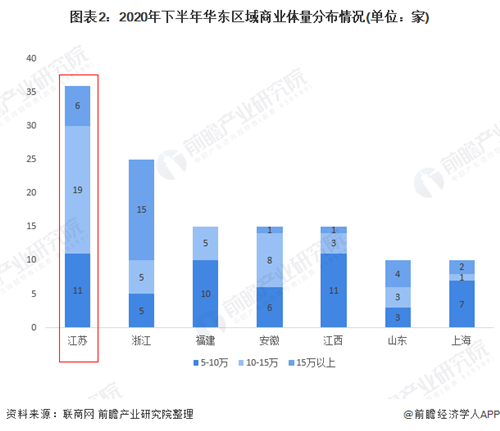 無論是商業(yè)項(xiàng)目數(shù)量還是體量,江蘇均領(lǐng)先華東區(qū)域其他省市。