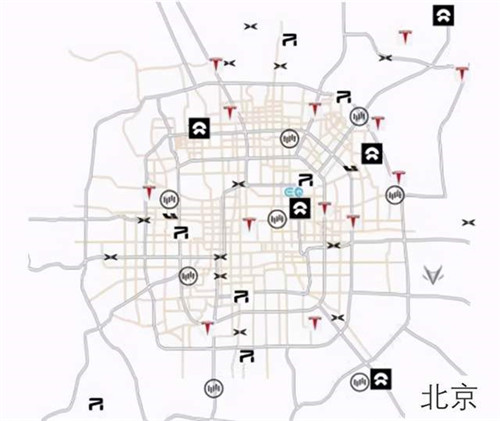 上海、北京、成都主要新能源汽車展廳布局示意圖