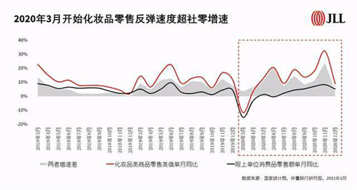 生在一個“顏值即正義”的看臉時代,雖然在去年初,居家隔離和出門戴口罩等政策和口罩讓化妝成為了“非必要活動”。但國內疫情趨緩后,化妝品零售額的反彈速度從3月開始就超過了社會消費品零售總額的增速。