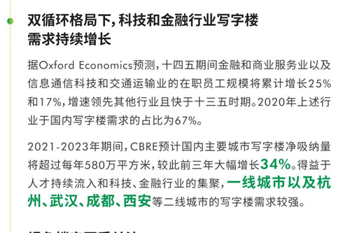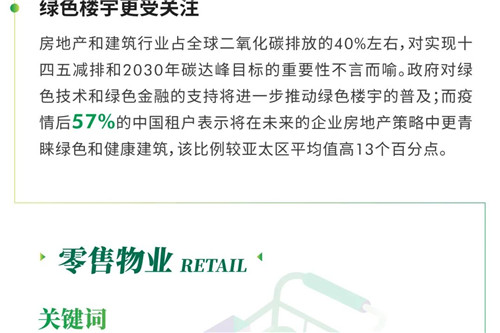 CBRE中國區總裁李凌表示,站在“十四五“的開局之年展望未來,以科技創新和消費升級為支點,“內循環”戰略和可持續發展理念將促進中國經濟和社會發展全面提質增效;而進一步縮減外資準入負面清單、推動RCEP實施、制度型開放等措施將引領中國對外開放邁向新高度。CBRE將繼續依托全球平臺和本地化理念,以商業地產服務為紐帶,幫助更多優質企業和境內外的投資機構/者在中國取得成功,并推動房地產科技賦能、韌性城市和綠色建筑的發展。