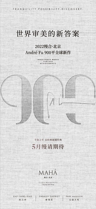此次與縵合·北京合作,打造全球首個頂級900住品——傅厚民900,以寧靜精神,帶來世界審美的新答案。5月縵請期待!