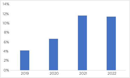 以產業園區的大宗物業成交為例,戴德梁行研究部的數據顯示,在基礎設施公募REITs獲批發行之前,產業園區項目的成交數量在全部大宗物業成交市場中的占比均較低,2019年及2020年成交個數占比僅為4.2%和6.7%;然而,在2021年之后,隨著多個產業園區基礎設施公募REITs獲批上市發行,產業園區項目開始受到市場追捧,成交數量大幅上升,2021年和2022年產業園區項目成交數量占比大幅上升到11.6%和11.38%。此外,物流倉儲類項目的成交也大幅增加,2020年這類資產的成交總額占比僅為6.6%,但至2022年,在其他資產成交大幅下降的情況下,物流倉儲類的大宗物業成交額占比大幅升至20.3%。