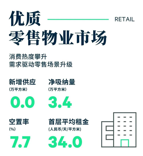 2023年第一季度,零售物業(yè)市場未錄得新項目入市,存量升級項目新天地時尚II于本季度煥新回歸,升級后項目引入包括USM全國首店、ARKET上海首店在內(nèi)的多家新潮首店,激發(fā)消費新活力,此外,升級改造后的項目突破盒子商業(yè)的傳統(tǒng)布局,以開放式的臨街門店打造全新復合型零售空間,致力于打造年輕潮流社交主場。上海零售物業(yè)市場借力春節(jié)假期,餐飲及電影院等線下消費場景熱度不斷攀升。截至季末,全市空置率環(huán)比下行0.3個百分點至7.7%,凈吸納量錄得3.4萬平方米。租金方面,核心商圈租金展現(xiàn)較強修復力,引領全市購物中心首層租金在連續(xù)三個季度下調(diào)后實現(xiàn)止跌,維持平穩(wěn)走勢,報每天每平方米人民幣34.0元。
