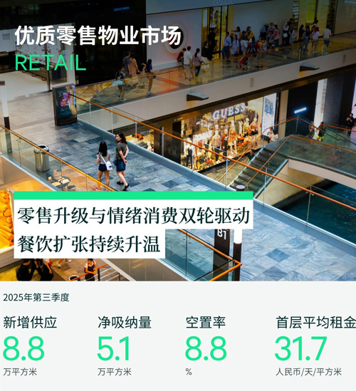 新項目入市推動全市凈吸納量達5.1萬平方米,但空置率環比微升0.2百分點至8.8%。核心商圈存量項目延續品牌調整趨勢,租金水平小幅回調至每天每平方米31.7元,市場呈現結構性調整特征。