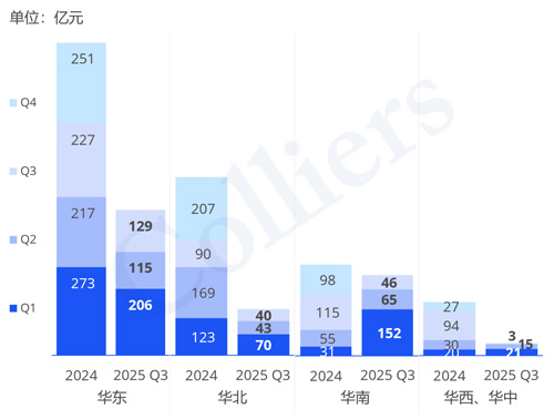 2025年前三季度全國各區(qū)域商業(yè)地產(chǎn)大宗成交金額
