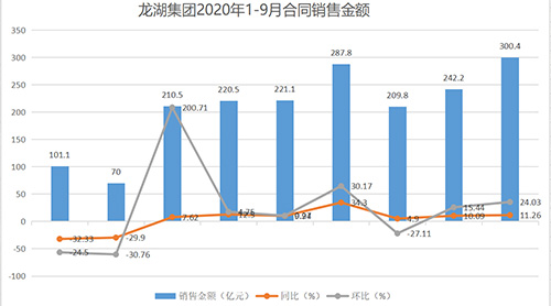 9月單月,龍湖集團實現(xiàn)合同銷售金額300.4億元,合同銷售面積176.5萬平方米,分別同比增長11.26%、28.64%。