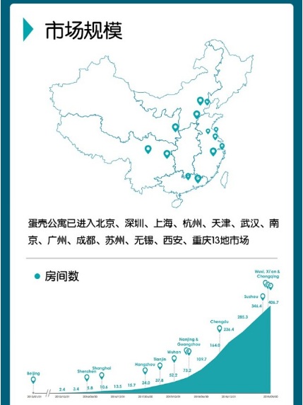 與整體營收增長相對應的,就是蛋殼公寓入駐城市、運營房間數的持續擴張。根據招股書披露,截至2019年11月30日,蛋殼公寓已經進入了全國13座主流一二線城市,管理運營的總房間數432,690間。