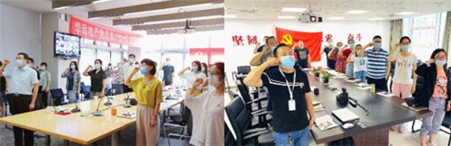 (2020年7月,華遠(yuǎn)地產(chǎn)黨總支、外埠城市公司屬地支部慶祝建黨99周年主題黨課重溫入黨誓詞)