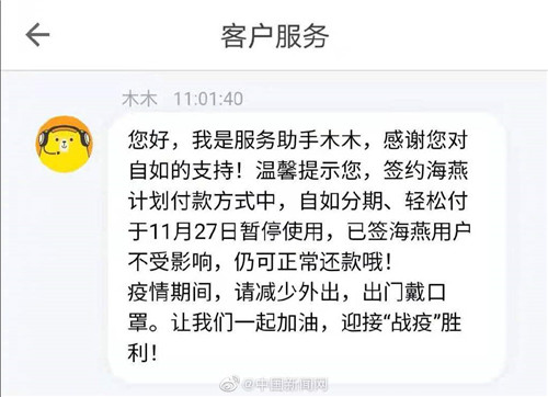 自如人工客服對此回復表示,目前北京海燕自如分期和輕松付付款方式已下線,還有武漢的海燕計劃也無法使用分期。