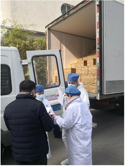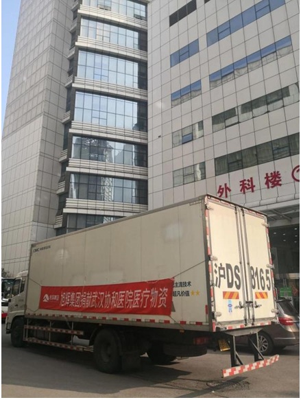 2月7日上午,旭輝集團捐贈的最新一批物資:50萬雙醫用手套、8920副護目鏡、880副面罩、2臺呼吸機、50臺輸液泵、100臺注射泵、5臺除顫儀,以及2000只N95口罩由貨車運抵武漢,并送到包括協和醫院在內的一線醫生手上。