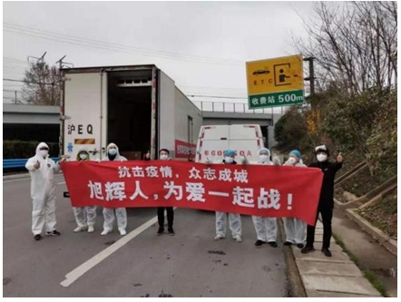 “時間就是生命”?紤]到武漢和鄂州的封路狀況,以及物資配送團隊人員有限,工作小組選擇直接在高速公路上完成交接,以避免手續的麻煩和配送的折返,保證在有限的時間內可以配送更多醫院,挽救更多生命。