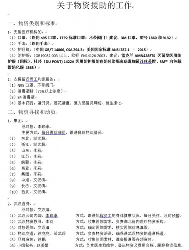 在疫情早期,旭輝武漢的工作小組就出臺了《物資援助工作指引》。也正是這份指引明確規定了物資類別和標準、人員分工、采購流程、對口醫院、運輸方式、確認方式等,確保了工作井然有序地開展。