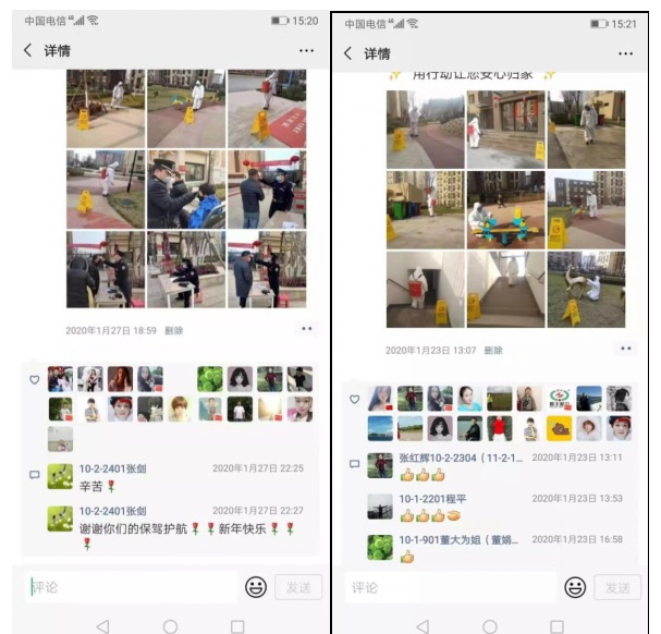 面對疫情期間的業主群體化的焦慮情緒,陽光城在物業服務過程中,也極為注意開展工作的方式方法,將一切工作靈活處置為“寬嚴相濟”的合理尺度。所謂嚴,主要反映在小區的封閉式管理、外來人員的體溫監測(包括快遞員等不與業主有直接接觸的群體)和車輛登記放行制度,以及日常中的保潔、消毒等一切工作;而所謂的“寬”,則是一切工作,均建立于科學合理、尊重業主的前提,不對住戶的正常生活形成負面的干擾,并通過科普宣傳、材料發放、樓棟管家微信群宣導等形式,讓居民理解和配合物業維護社區安全的工作。“溫柔而堅定”,“靈活有原則”,是所有陽光城物業人員在此期間的工作準則,也是因此,陽光城贏得了業主的交口稱譽。