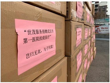 2月21日,伴著溫暖的夕陽,一輛滿載醫用防護服的捐贈貨運車緩緩駛入武漢市第一醫院。由世茂服務總部動員各方力量,采購并運輸至武漢的2000件防護服,順利地交到武漢第一醫院工作人員的手上。