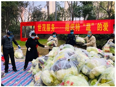 此外,為了解決買菜難、取外賣、取快遞這些“宅家剛需”需求,世茂服務通過旗下科技公司世茂物聯研發上線了“鮮蔬到家”“跑腿服務”等線上服務,將業主所需的蔬菜、外賣、快遞由物業管家送到家門口,有效降低了業主與外來人員接觸帶來的病毒傳播風險。2月5日,為了讓武漢的業主過一個安心的元宵節,在漢4個小區的業主和住戶收到了物業管家送來的76噸新鮮愛心蔬菜,平均每戶達18斤。連夜送菜的動作,讓業主感動地直言“世茂的管家太貼心了,太辛苦了!”