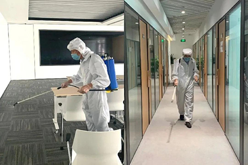 隨著復工有序開展,大悅城控股加強宣傳引導和人員管理,明確全員佩戴口罩上崗,每日上午下午2次監測體溫、每日不少于3次全面消毒,并要求寫字樓、產業園項目第一時間制定應急處置預案,確保措施到位且及時有效。