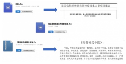這些可疑文件有的是模仿政府工作文件命名的表格如“基層黨組織和黨員防空疫情重大事項日報表”,并且打著“防疫”的口號或“中醫藥秘方”為標題的內容。據微步在線的技術人員稱,這些都是網絡攻擊的誘餌文件。