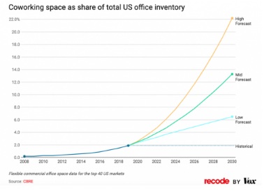 與此同時,美國聯合工作空間也保持了高速增長,并沒有因在線辦公技術的發展和遠程辦公者的增多而萎縮。