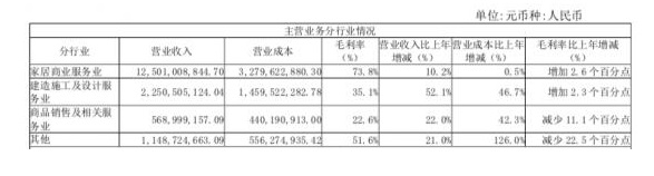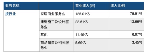 從營(yíng)收結(jié)構(gòu)來(lái)看,家居商業(yè)服務(wù)業(yè)仍然是紅星美凱龍的主要收入來(lái)源,金額為125.01億元,同比增長(zhǎng)。建造施工及設(shè)計(jì)服務(wù)業(yè)收入位居第二,有22.5億元。