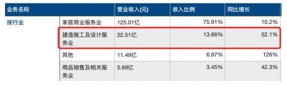 除了排名第一的家居商業(yè)服務(wù)業(yè),紅星美凱龍的建造施工及設(shè)計(jì)服務(wù)業(yè)已經(jīng)悄然躍居第二位,收入同比增加52.1%。