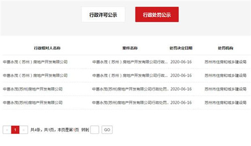 近日,江蘇省蘇州市住房和城鄉建設局在官網上公示了對中葛永茂(蘇州)房地產開發有限公司的行政處罰決定書。在6月16日一天內,該公司因未依法公開招標,連收四張罰單,累計處罰金額達到三十七萬元。