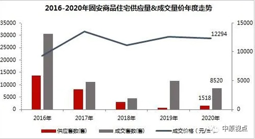 數據顯示,2020年,固安商品住宅表現為量價齊跌,成交8520套,成交套數同比下降26%;成交面積86萬㎡;成交均價為12294元/㎡,同比下降3%;成交金額為106億元,同比下降21%。