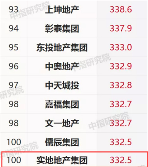 據(jù)克而瑞統(tǒng)計,實地集團2020年全口徑銷售額為257.4億元,剛好排名行業(yè)第100位。而在中指研究院的榜單中,實地集團去年全年的銷售額為332.5億元,同樣排名第100位。