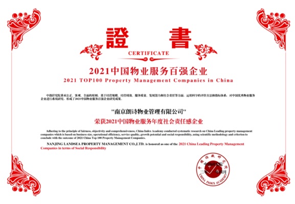朗詩綠色生活憑借行業領先的服務質量、良好的客戶口碑及業務發展、高度的社會責任感,再次贏得業界高度認可,連續5年蟬聯“2021中國物業服務百強企業”,排名提升至TOP24,并榮獲“中國物業服務百強服務質量領先企業”、“中國物業服務百強滿意度領先企業”、“中國物業管理行業市場化運營領先企業”、“中國物業服務年度社會責任感企業”。